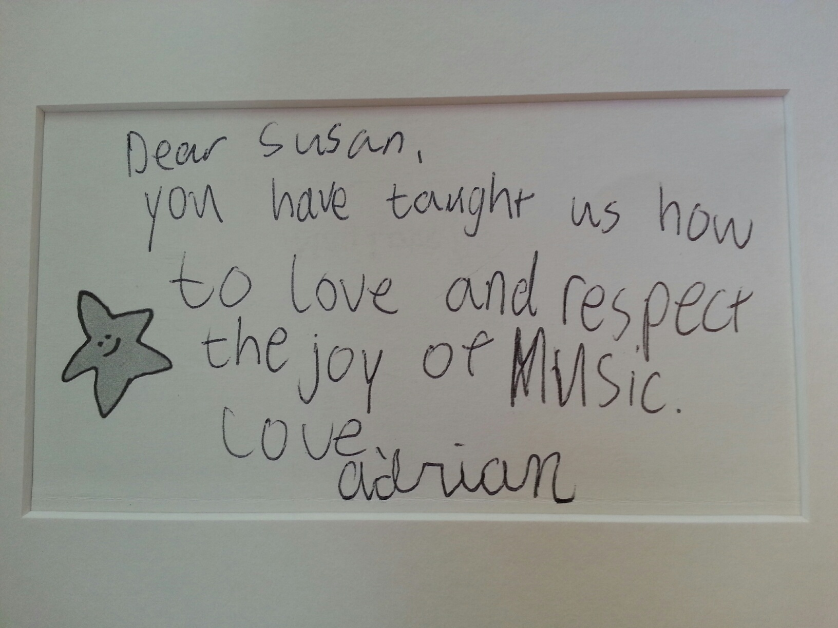 “[Susan is a] neighborhood treasure! My friend had been talking about her “wonderful music teacher!” My girls are SO comfortable with you AND you are not afraid to set boundaries and enforce rules. The girls walk away feeling proud, knowledgeable and confident.”